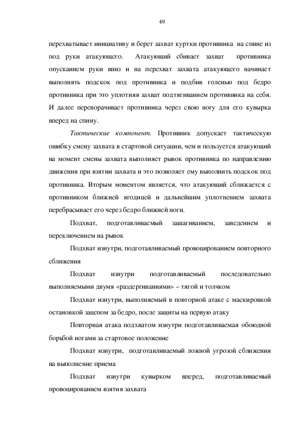 технические структуры с броском подхватом и тактические компоненты