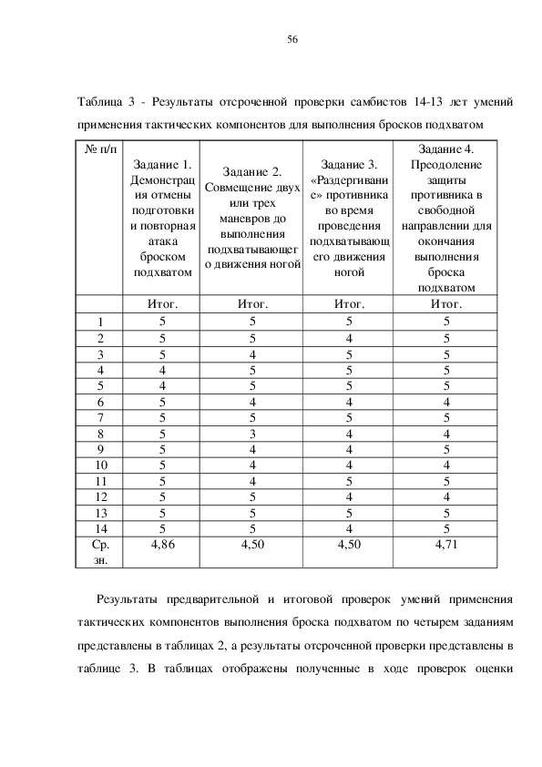 по четырем заданиям выполнения тактическим компонентов при