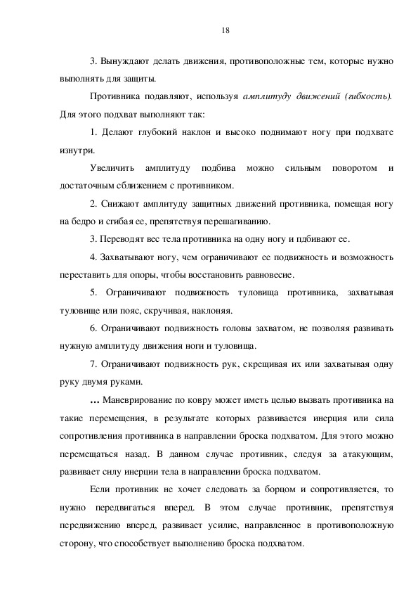 противника. Таким образом, наблюдается противоречие в подготовке борцов,