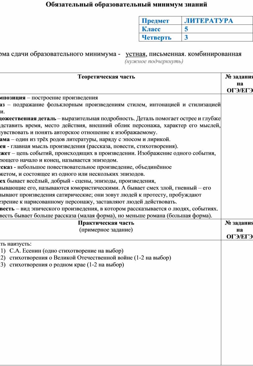 Знать наизусть: 1) С.А. Есенин (одно стихотворение на выбор) 2) стихотворения о Великой Отечественной войне (1-2 на выбор) 3) стихотворения о родном крае (1-2 на выбор)