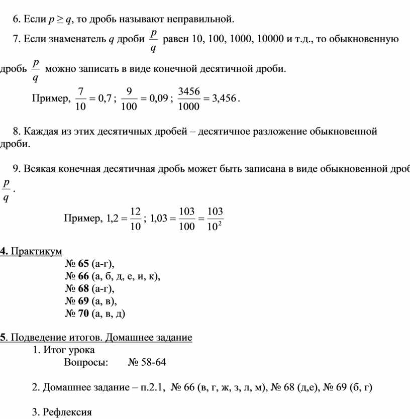 Тема: Обыкновенные дроби. Конечные десятичные дроби