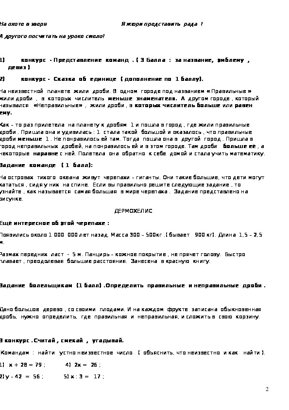 УРОК - КВН « Ох , уж эти дроби» в 5 – х классах