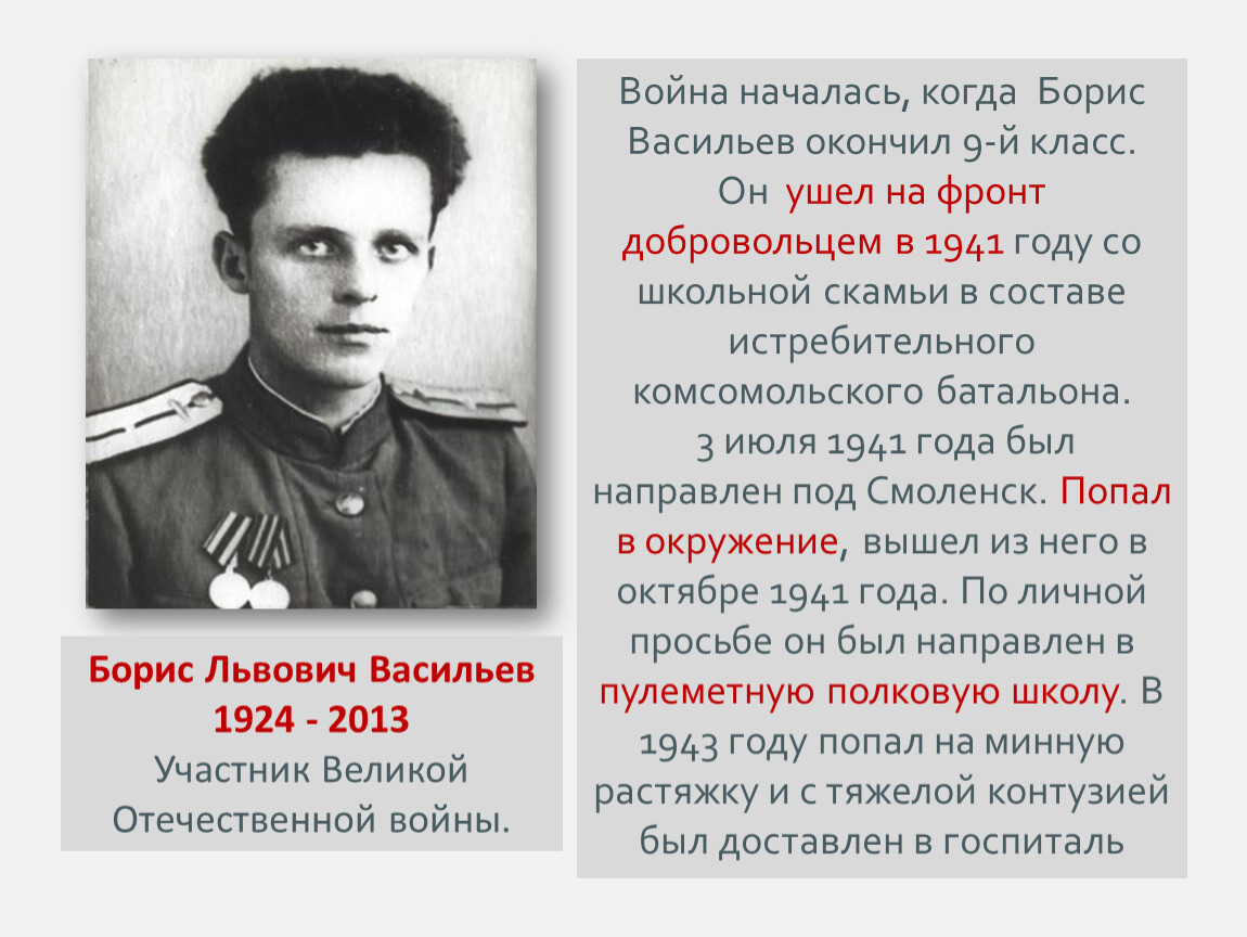 Война началась, когда Борис Васильев окончил 9-й класс.