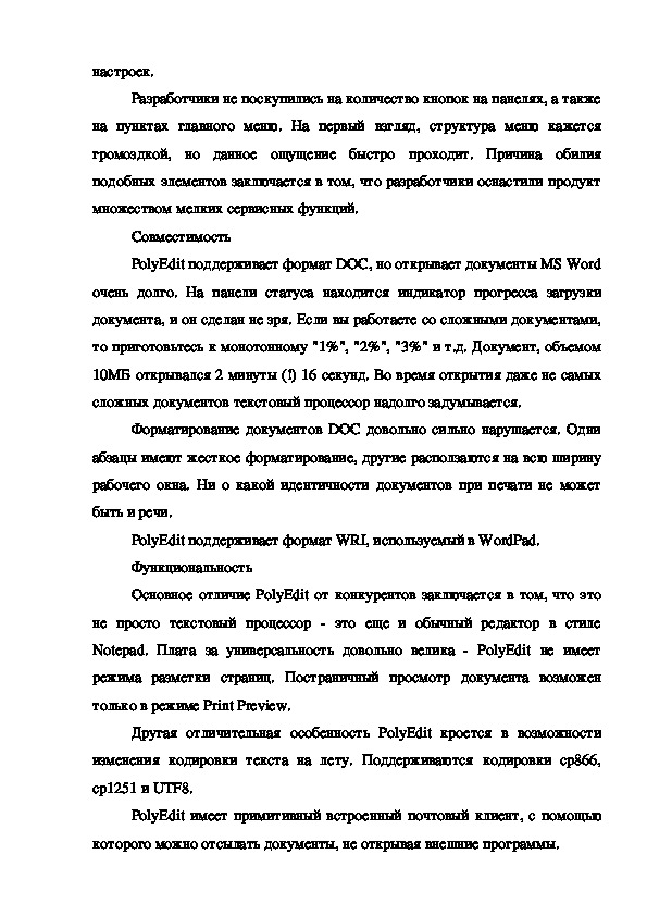 мощного текстового процессора, но лаконичность интерфейса, высокая