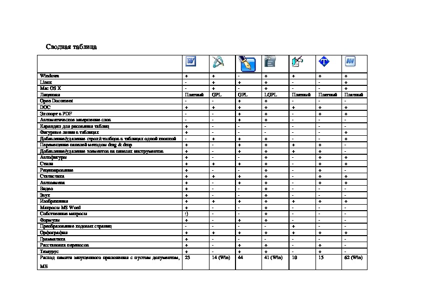 которой альтернативные текстовые процессоры заслуживают внимания.Сводная таблица