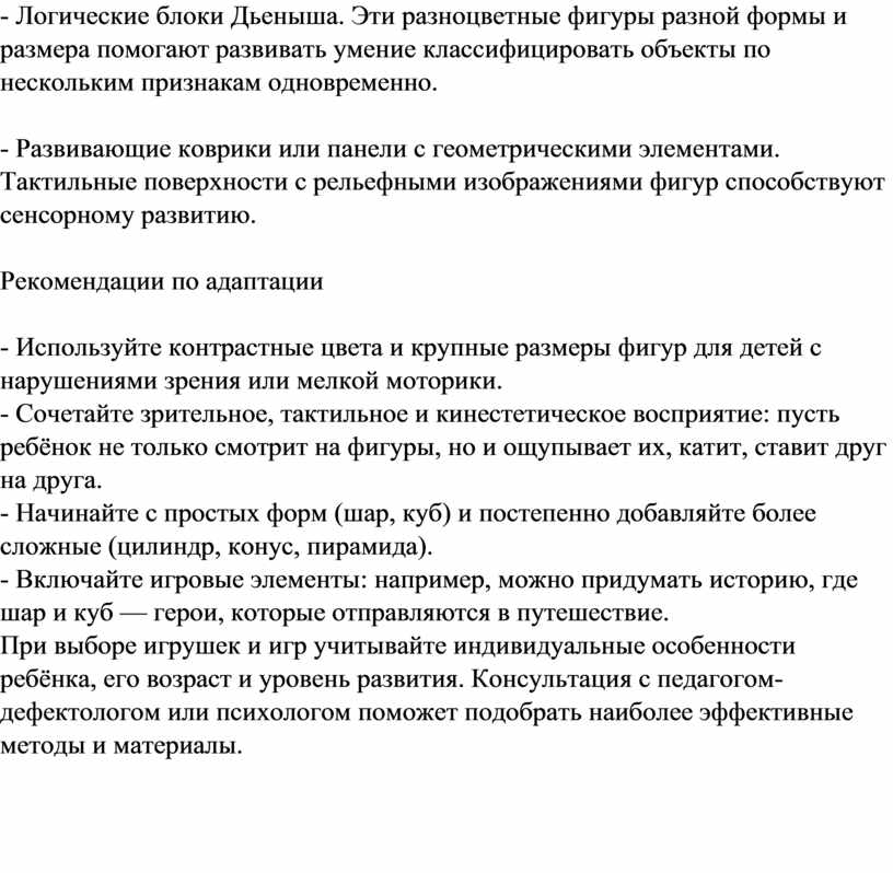 - Используйте контрастные цвета и крупные размеры фигур для детей с нарушениями