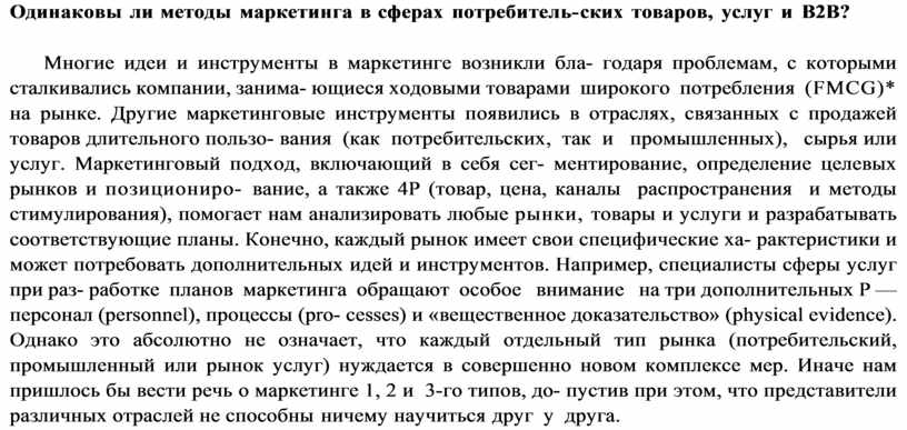 Одинаковы ли методы маркетинга в сферах потребитель ских товаров, услуг и В2В?