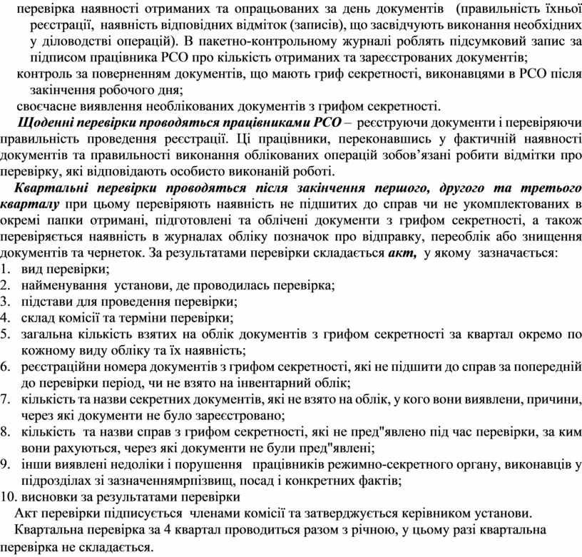 пов’язані з державною таємницею, проводиться не рідше як один раз на рік у присутності виконавців, а у випадку їх відсутності – у присутності начальника підрозділу або його заступника згідно з інструкцією.