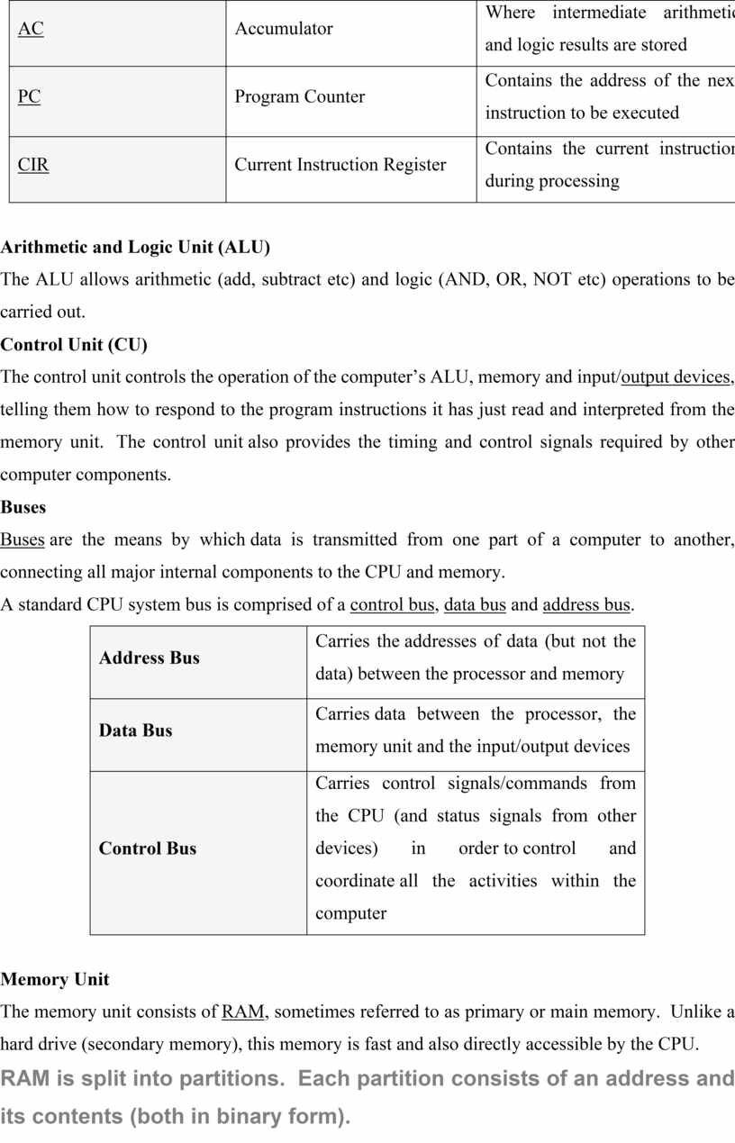 RAM is split into partitions. Each partition consists of an address and its contents (both in binary form).