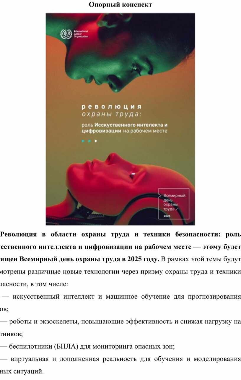 Революция в области охраны труда и техники безопасности: роль искусственного интеллекта и цифровизации на рабочем месте — этому будет посвящен Всемирный день охраны труда в 2025 году. В рамках этой темы будут рассмотрены различные новые технологии через призму охраны труда и техники безопасности, в том числе: