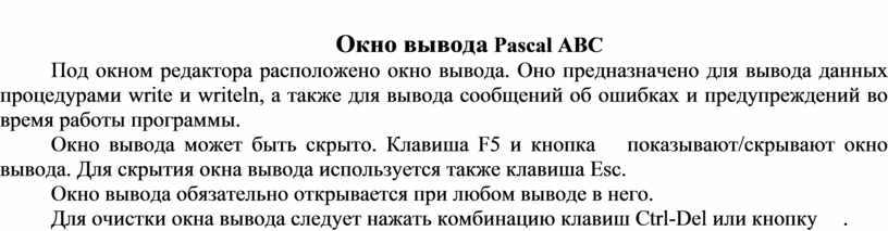 Окно вывода Pascal ABC