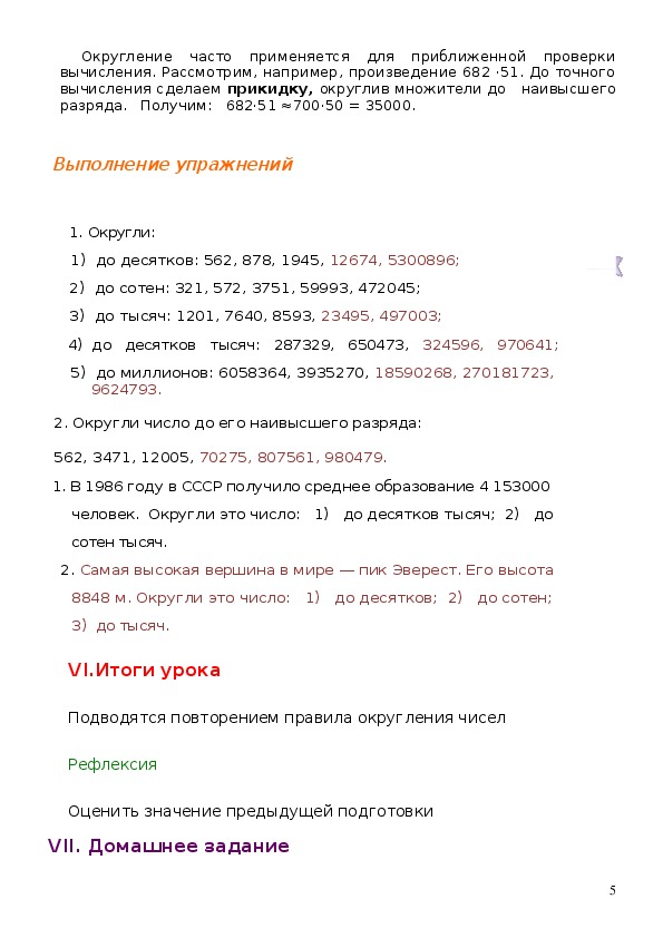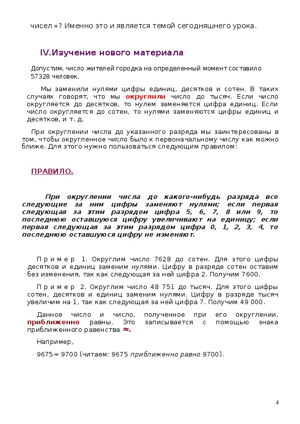 чисел до десятков, сотен, тысяч и т. д. Введение правила округления. Формирование умения окру¬глять числа до единиц указанного разряда.