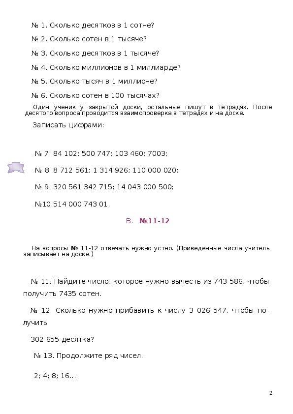 На вопросы № 11-12 отвечать нужно устно. (Приведенные числа учитель