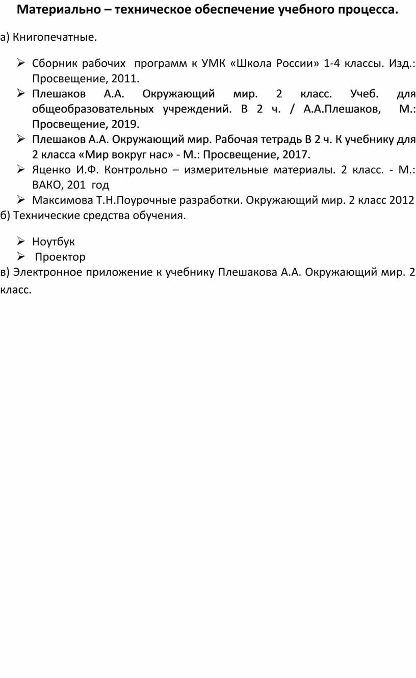 Учебник для общеобразовательных учреждений 2 класс (авторы: Плешаков А.А., М.: «Просвещение», 2019г.)