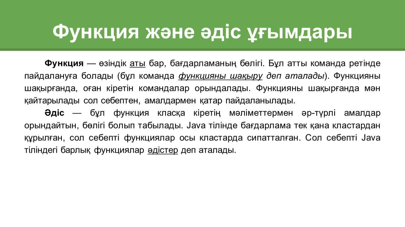 Функция және әдіс ұғымдары