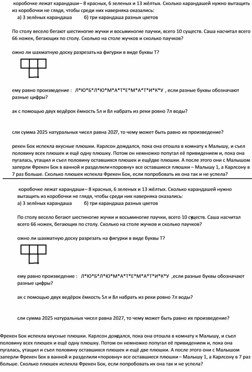 2. По столу весело бегают шестиногие жучки и восьминогие паучки, всего 10 существ. Саша насчитал всего 66 ножек, бегающих по столу. Сколько на столе жучков и сколько паучков?