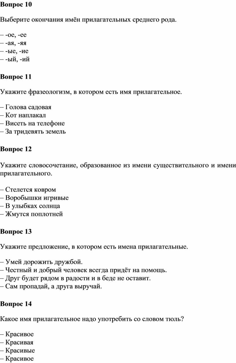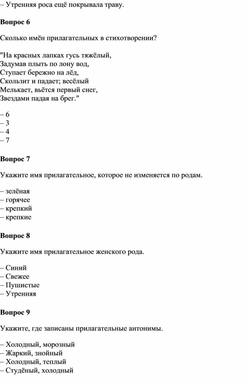 Сколько имён прилагательных в
