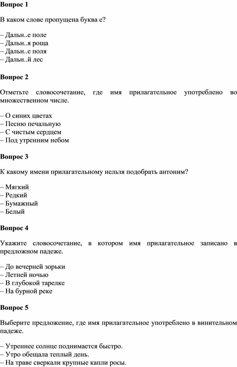 1.Проверка знаний о грамматических признаках имен прилагательных.