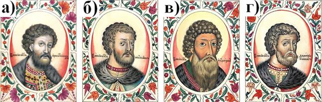 6. (3 балла) На каком из портретов изображён князь переяславский (1200–1206), князь переяславль-залесский (1212–1238), великий князь киевский (1236–1238, 1243–1246), великий князь владимирский (1238–1246), князь новгородский (1215, 1221–1223, 1226–1229, 1231–1236), который в 1243 году первым из русских князей был вызван в Золотую Орду к Батыю?