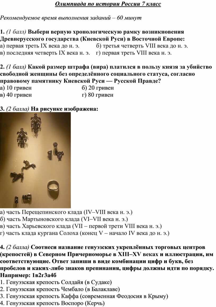 Олимпиада по истории России 7 класс