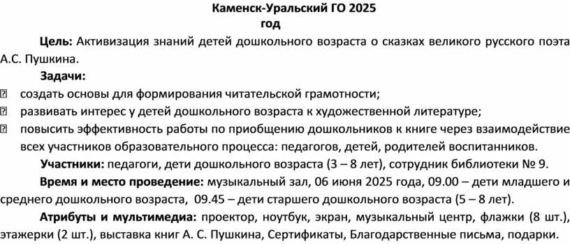 Время и место проведение: музыкальный зал, 06 июня 2025 года, 09.00 – дети младшего и среднего дошкольного возраста, 09.45 – дети старшего дошкольного возраста (5 – 8 лет).