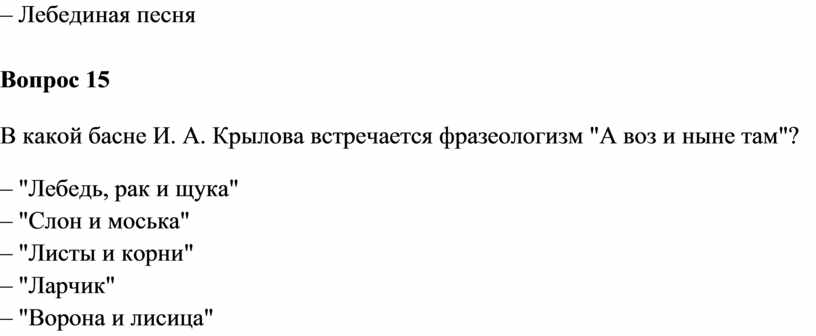 В какой басне И. А. Крылова встречается фразеологизм "А воз и ныне там"?