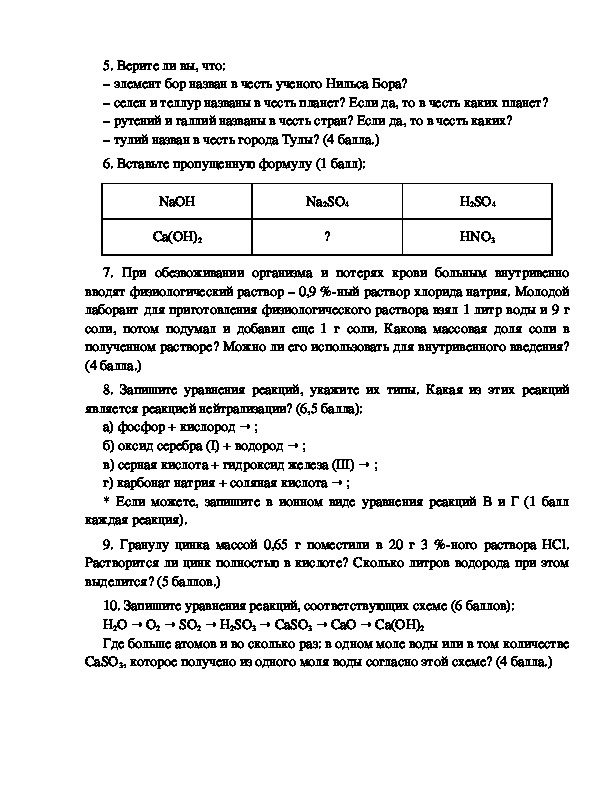 FeSO4, FeCl3, K2CO3, Mg(OH)2, Ca3(PO4)2. (4 балла.)5. Верите ли вы, что: