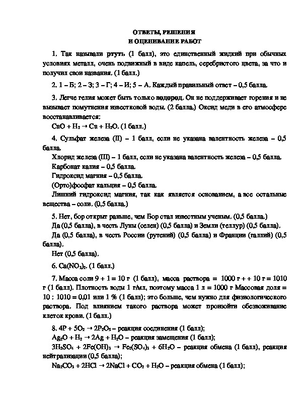 7. Масса соли 9 + 1 = 10 г (1 балл), масса раствора = 1000 г + + 10 г = 1010