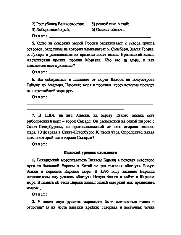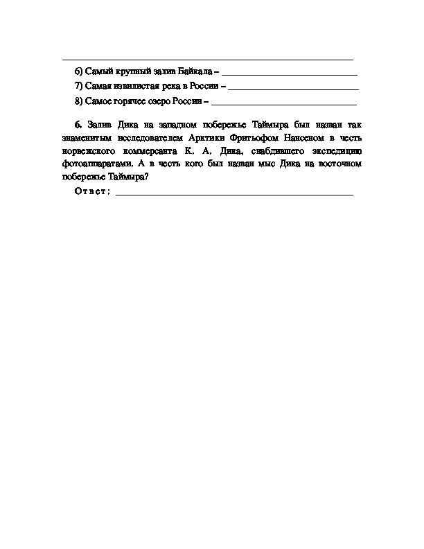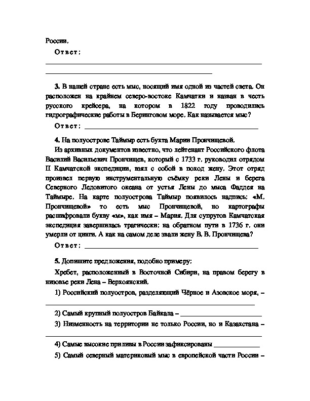 5) Самый северный материковый мыс в европейской части России –____________________________________________________________