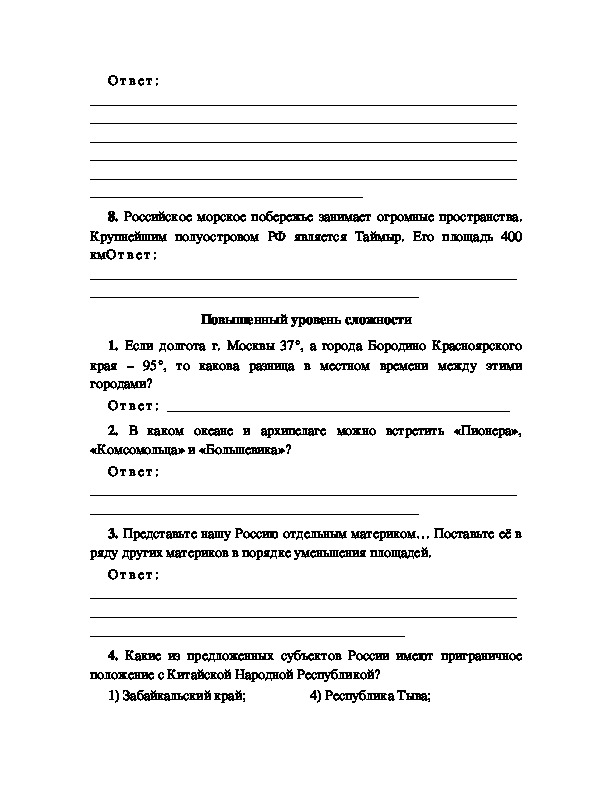 1. Если долгота г. Москвы 37°, а города Бородино Красноярского