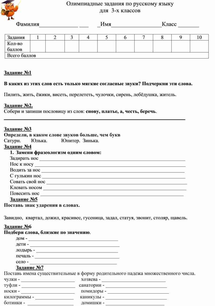 Олимпиадные задания по русскому языку