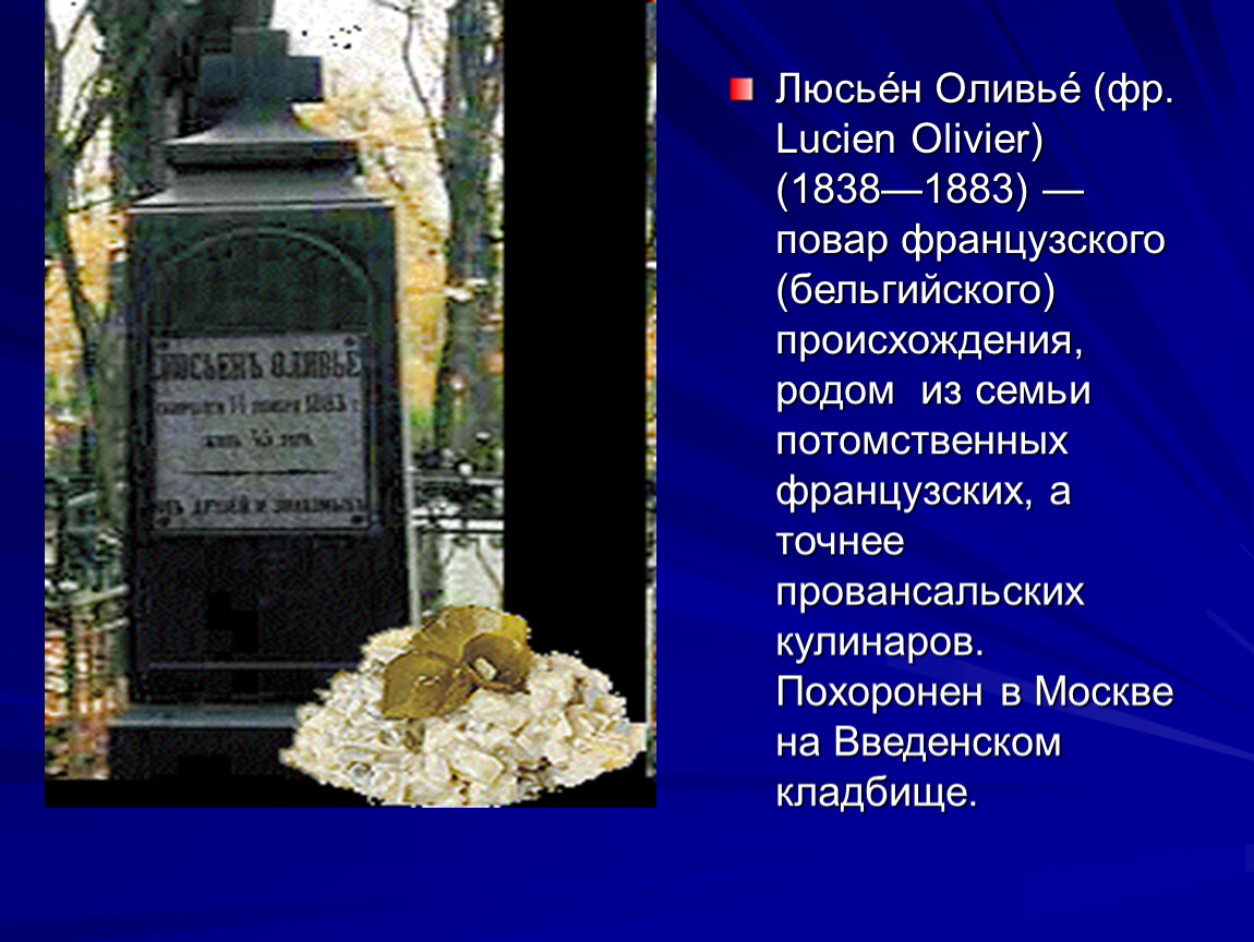Люсье́н Оливье́ (фр. Lucien Olivier) (1838—1883) — повар французского (бельгийского) происхождения, родом из семьи потомственных французских, а точнее провансальских кулинаров. Похоронен в Москве на Введенском кладбище.