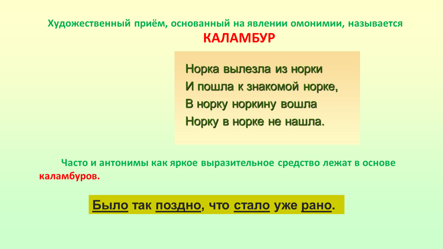 Художественный приём, основанный на явлении омонимии, называется