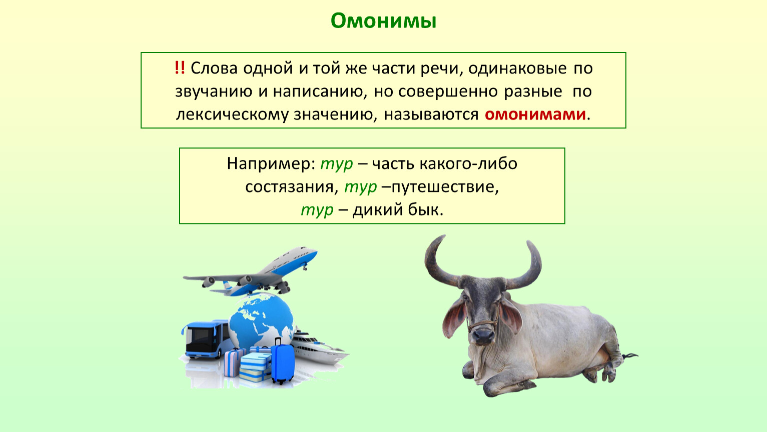 Например: тур – часть какого-либо состязания, тур –путешествие,