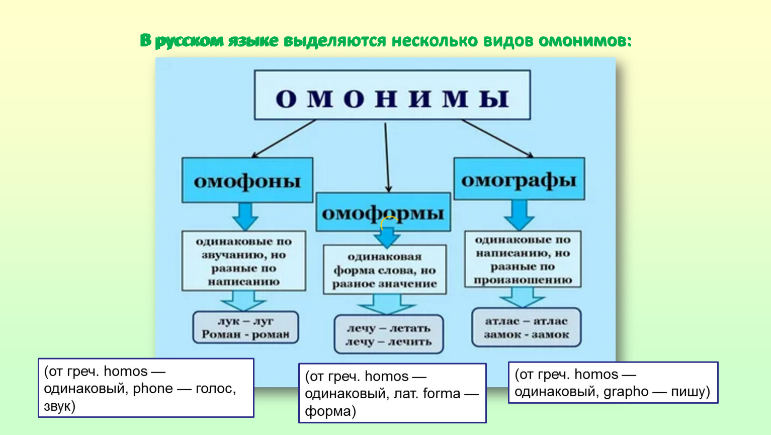 В русском языке выделяются несколько видов омонимов: