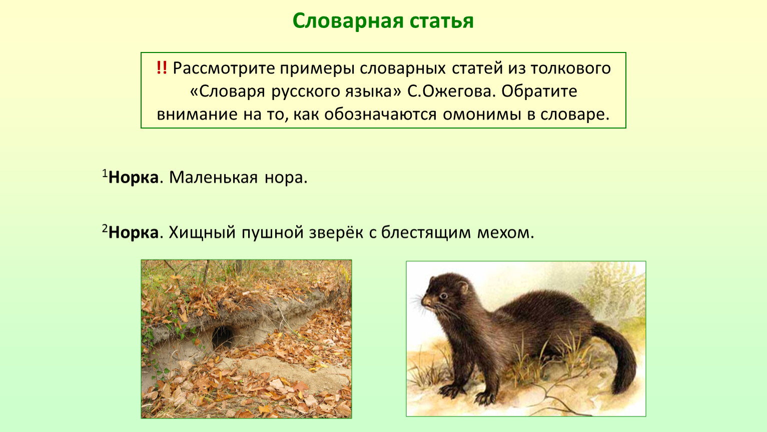 !! Рассмотрите примеры словарных статей из толкового «Словаря русского языка» С.Ожегова. Обратите внимание на то, как обозначаются омонимы в словаре.