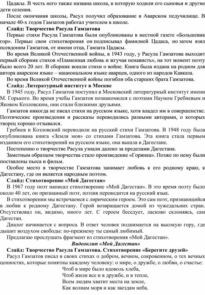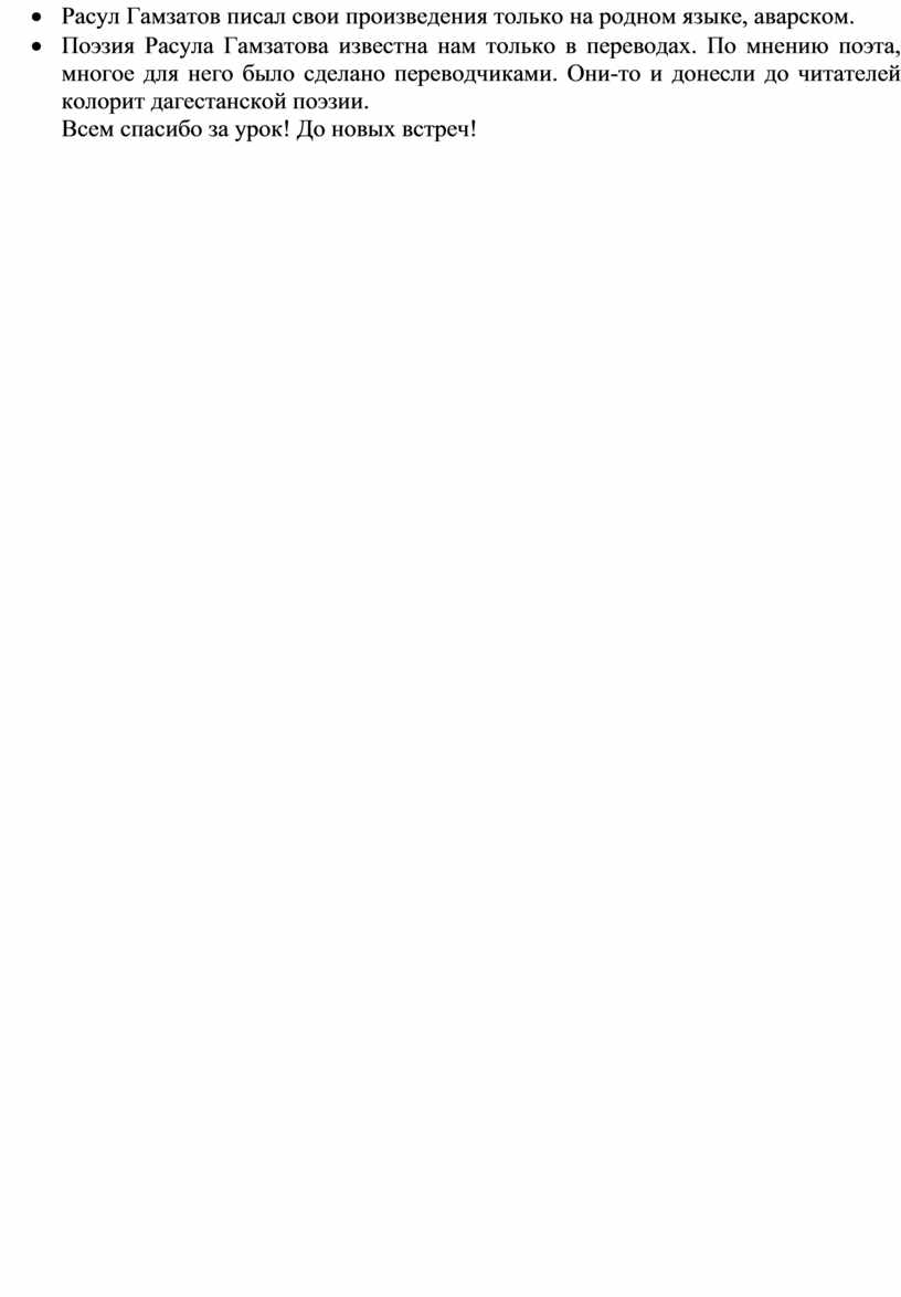 Цель: знакомство с биографией и творчеством поэта Расула Гамзатова