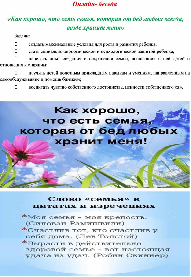 «Как хорошо, что есть семья, которая от бед любых всегда, везде хранит меня»