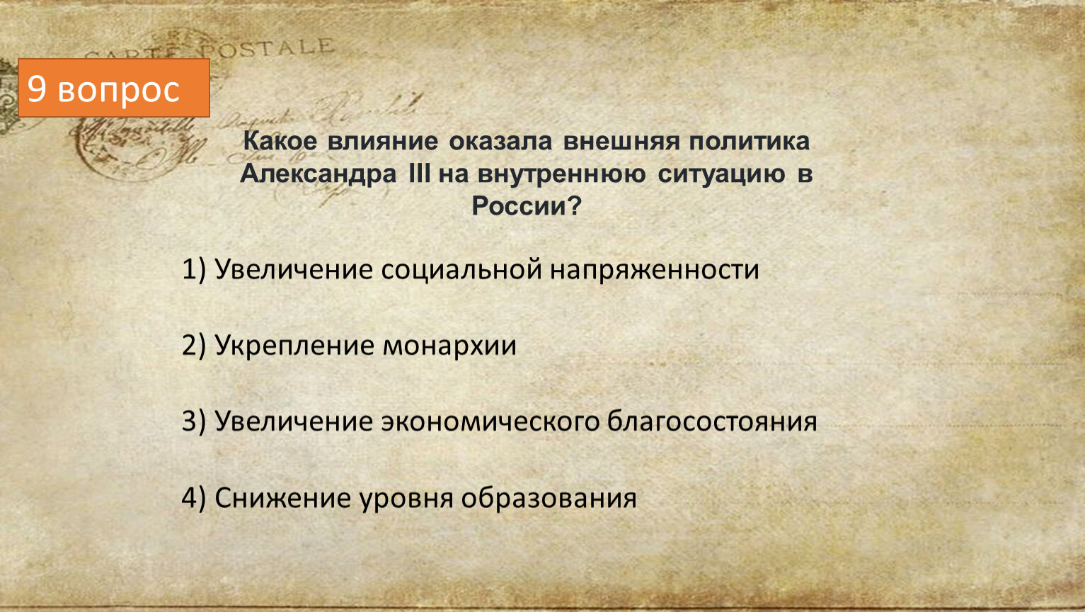 Какое влияние оказала внешняя политика Александра III на внутреннюю ситуацию в России?