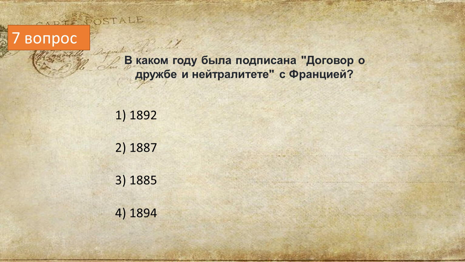 В каком году была подписана "Договор о дружбе и нейтралитете" с Францией?