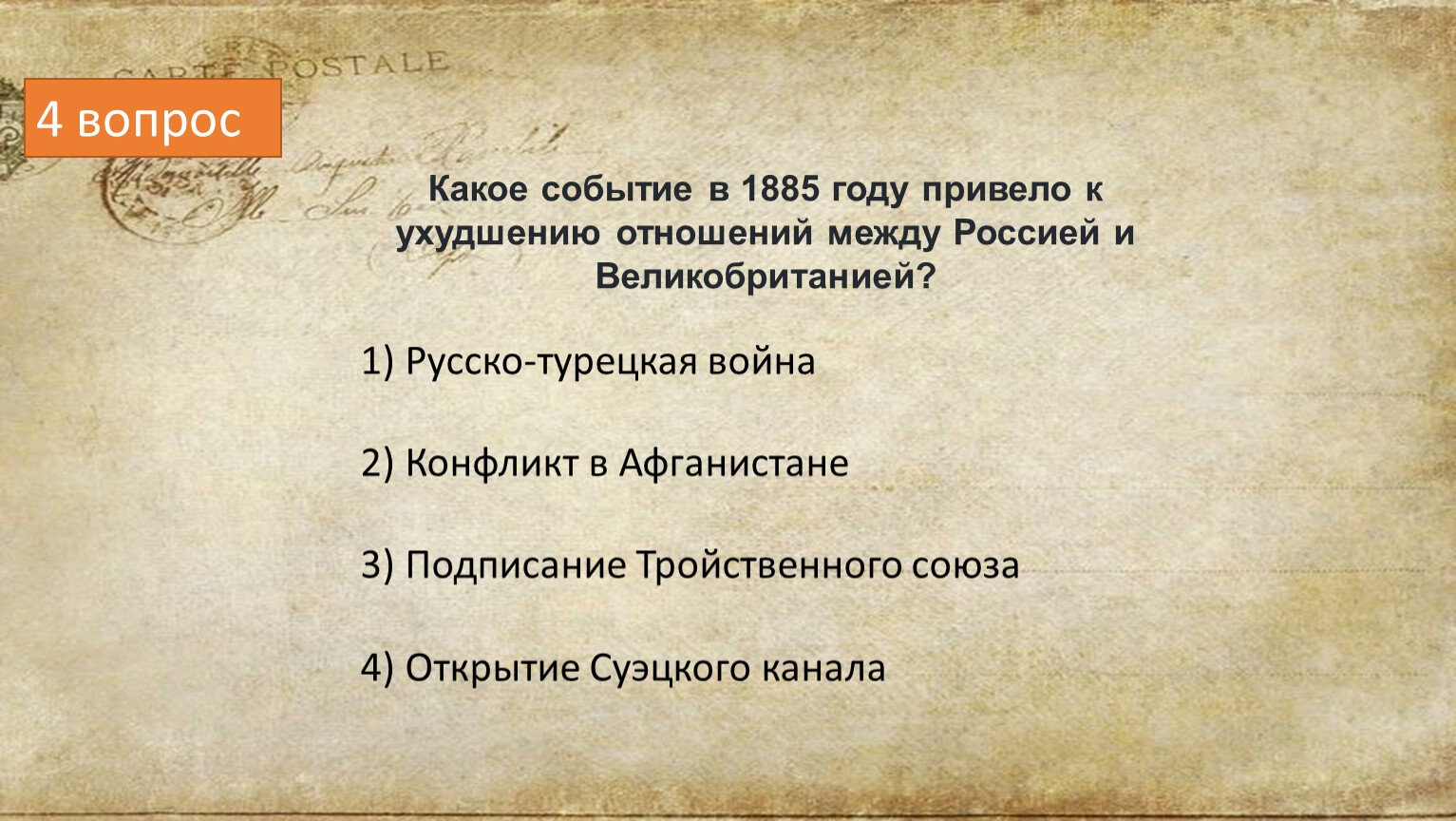 Какое событие в 1885 году привело к ухудшению отношений между Россией и Великобританией?