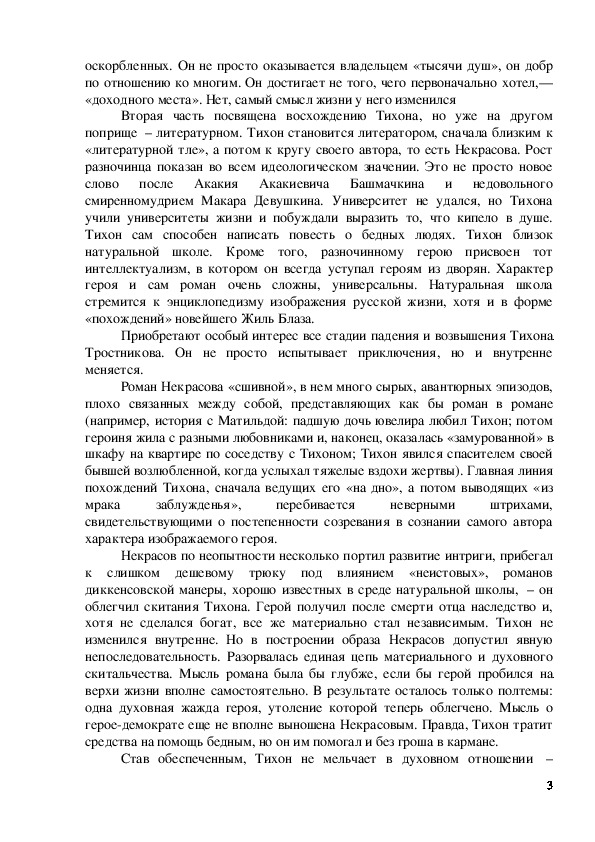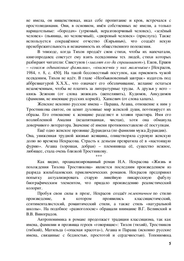 Ономастический текст в романе Н.А. Некрасова «Жизнь и похождения Тихона Тростникова»Роман Н.А. Некрасова «Жизнь и похождения Тихона Тростникова» является последним произведением из разряда жильблазовских приключенческих романов. Некрасов предпринял попытку актуализировать старую линейную пикарескную фабулу биографическим элементом, что придало произведению реалистический колорит.