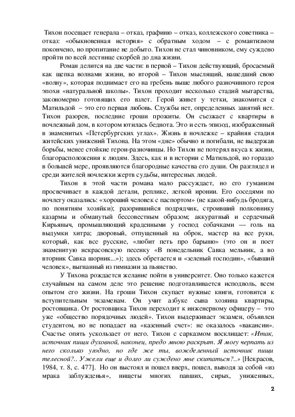 Как видно, проанализированный роман Н.А. Некрасова «Жизнь и