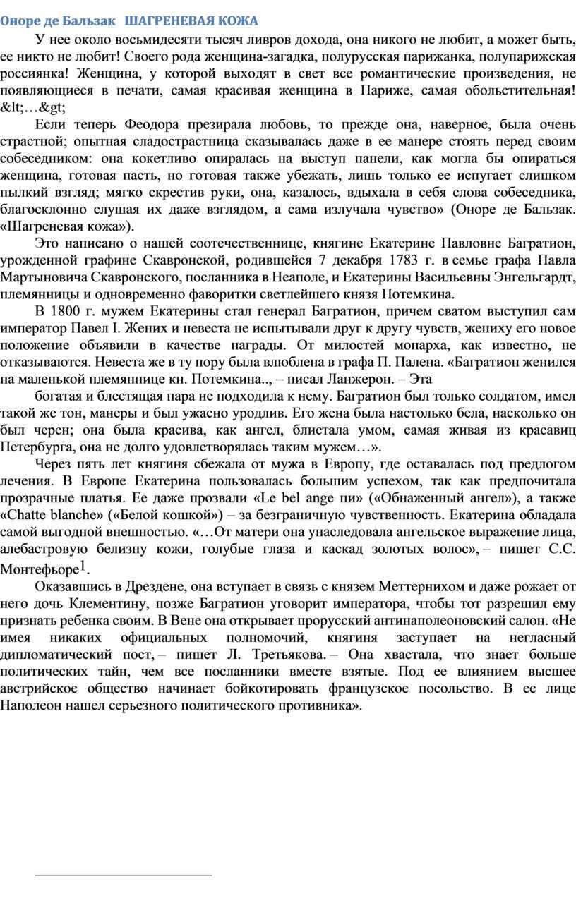 У нее около восьмидесяти тысяч ливров дохода, она никого не любит, а может быть, ее никто не любит! Своего рода женщина-загадка, полурусская парижанка, полупарижская россиянка! Женщина, у которой выходят в свет все романтические произведения, не появляющиеся в печати, самая красивая женщина в Париже, самая обольстительная! <…>
