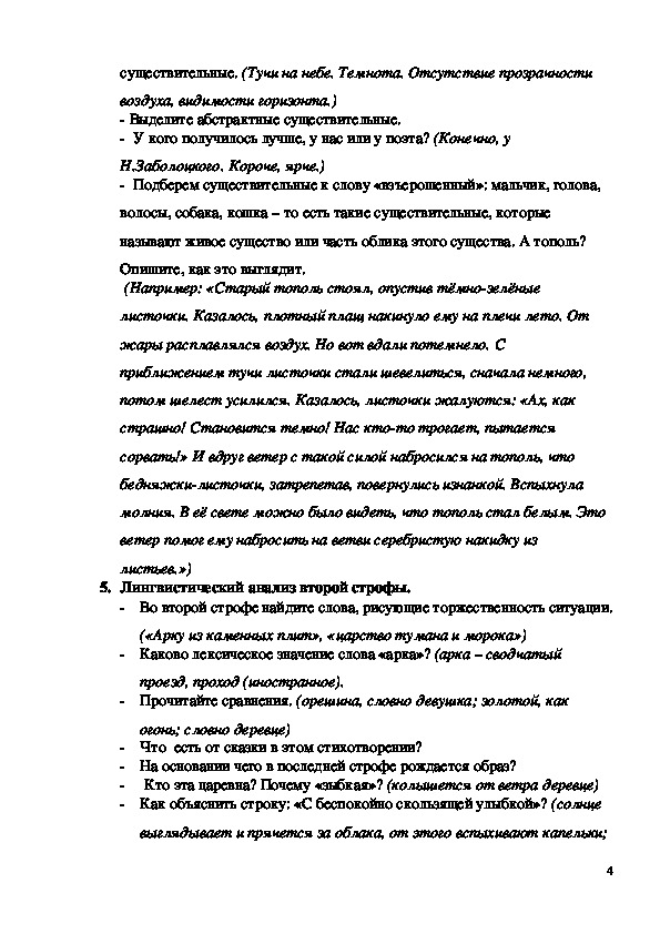 Оборудование: распечатанный текст стихотворения Н.Заболоцкого