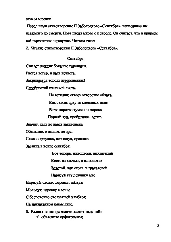 2. Чтение стихотворения Н.Заболоцкого «Сентябрь».