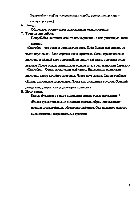 Оборудование: распечатанный текст стихотворения Н.Заболоцкого «Сентябрь».