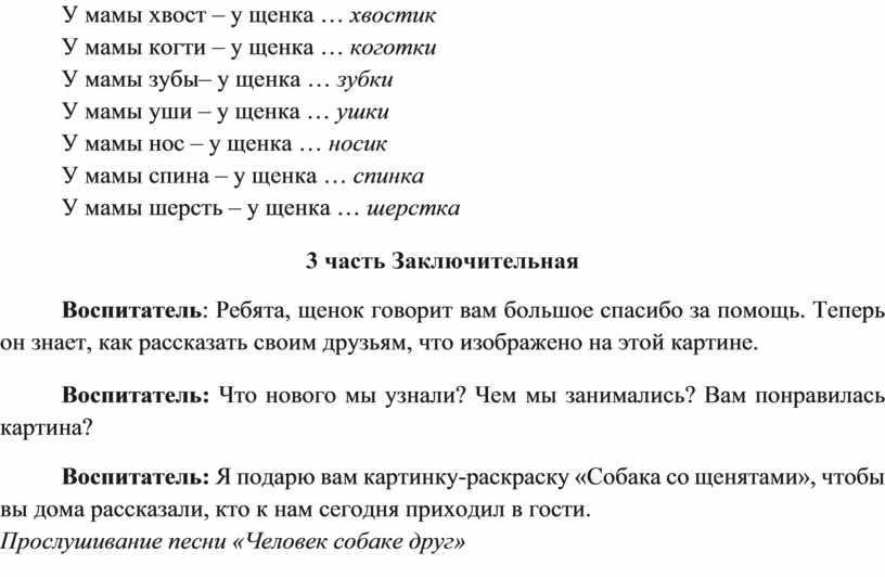 Воспитатель: Почему ты думаешь, что эти слова о собаке, а не о щенке?