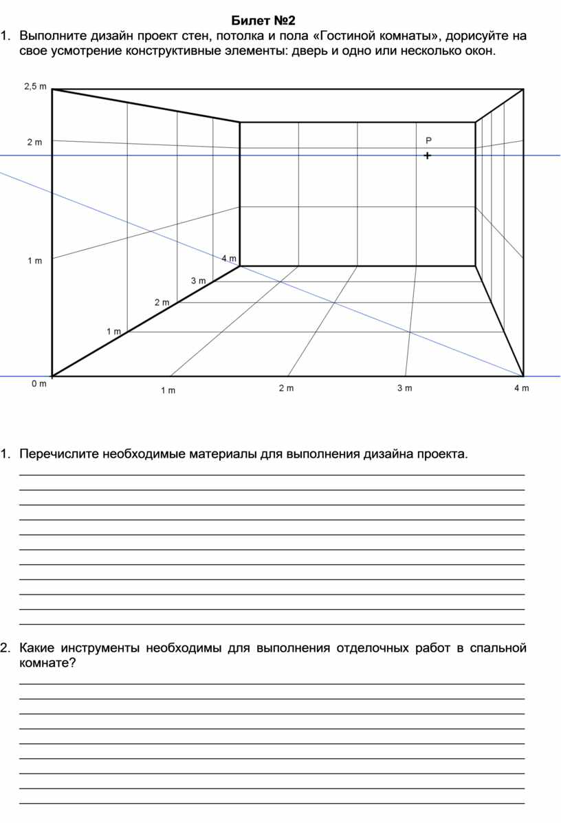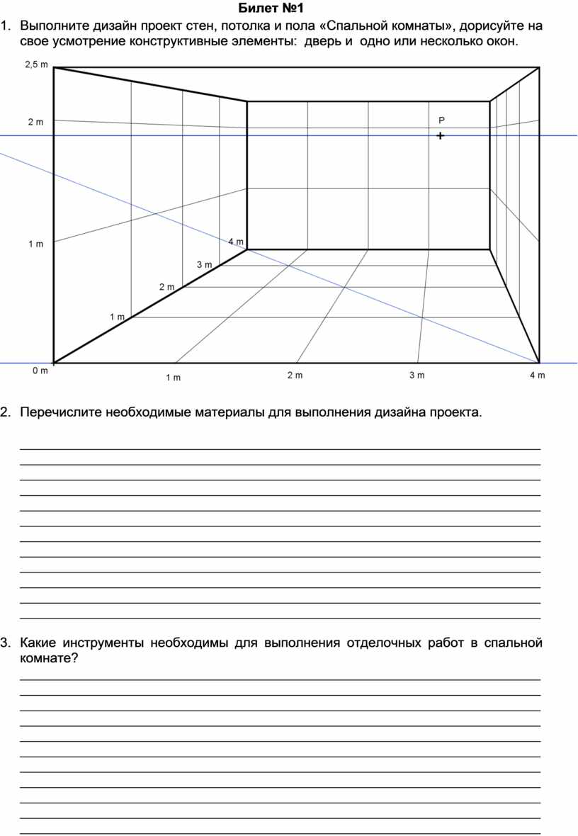 1. Выполните дизайн проект стен, потолка и пола «Спальной комнаты», дорисуйте на свое усмотрение конструктивные элементы: дверь и одно или несколько окон.
