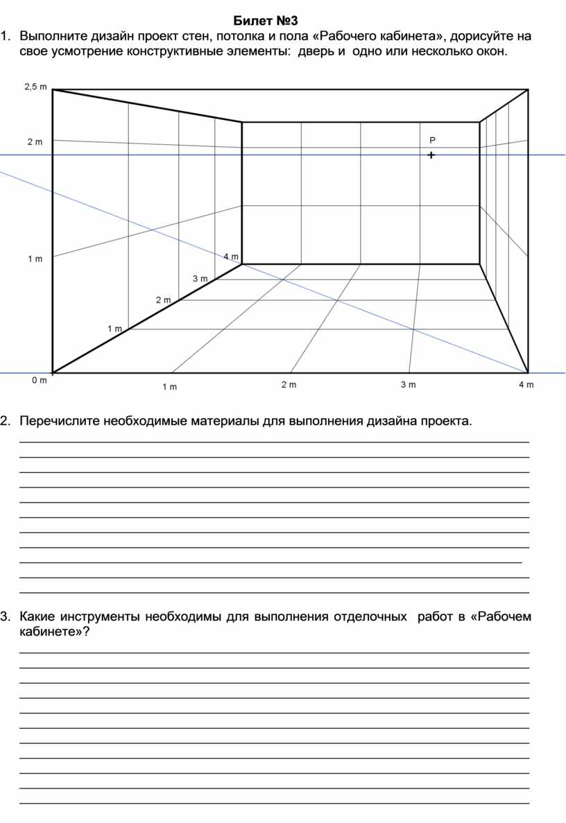 1. Выполните дизайн проект стен, потолка и пола «Рабочего кабинета», дорисуйте на свое усмотрение конструктивные элементы: дверь и одно или несколько окон.